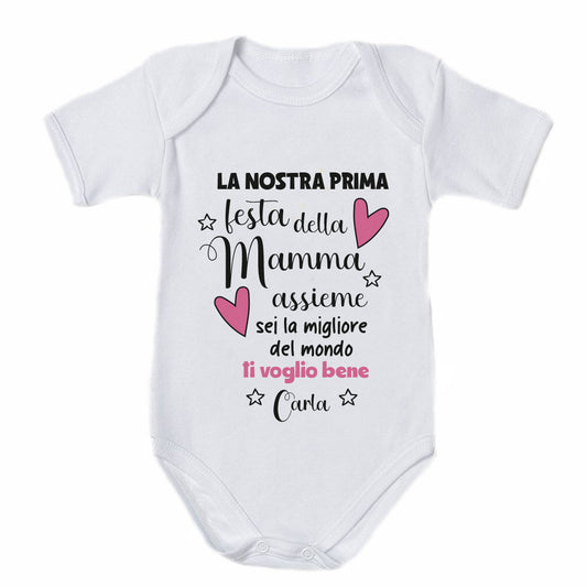 La nostra prima festa della mamma - Tutina neonato - body personalizzato con nome