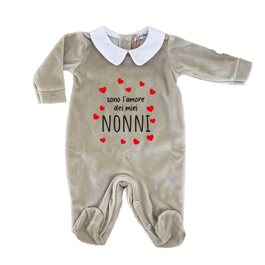Sono l'amore dei miei nonni - Pagliaccetto Neonato in Ciniglia con Colletto Bianco