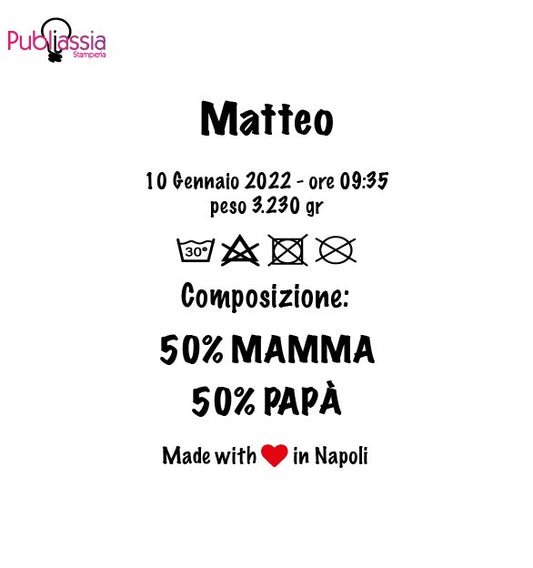 50% Papy + 50% Mamy - Tutina neonato personalizzata con nome