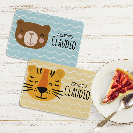 Animals - Set di 4 Tovagliette in tessuto lavabile - personalizzata con nome