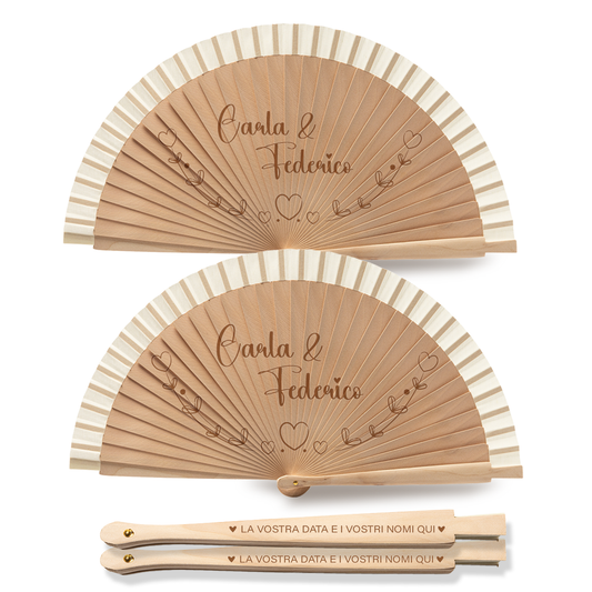 Heart - Coppia di Ventagli in legno - personalizzata con nomi e data