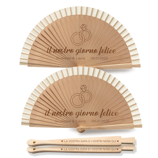 Il nostro giorno felice - Coppia di Ventagli in legno - personalizzata con nomi e data