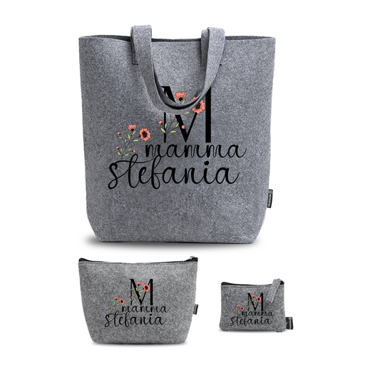 Mamma flower name - Tris Borse in feltro con designe melange - personalizzato con nome