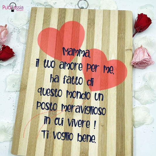 Mamma il tuo amore per me ha fatto di questo mondo un posto meraviglioso - Tagliere in Legno Personalizzato