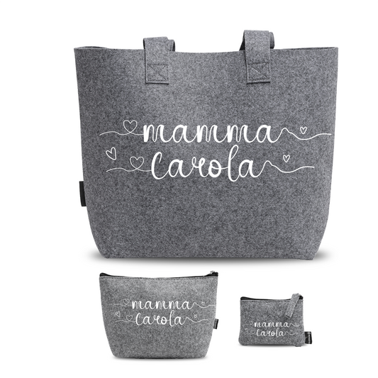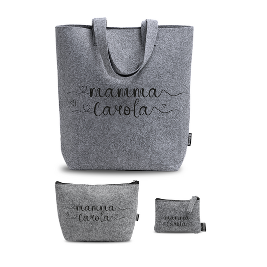 Mamma name - Tris Borse in feltro con designe melange - personalizzato con nome