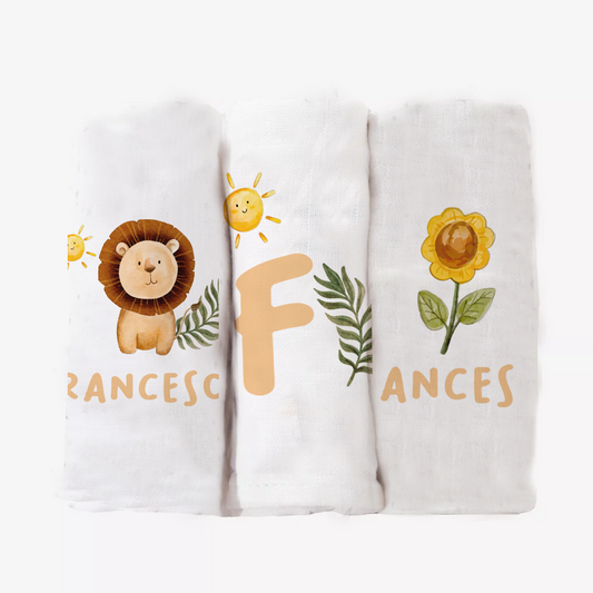 Baby Lyon - Set 3 pezzi mussole personalizzate con nome