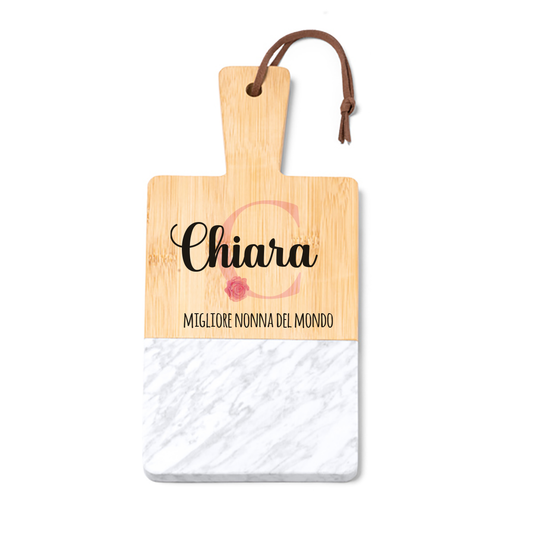 Migliore nonna del mondo - Tagliere in marmo e bamboo naturale - personalizzato con nome