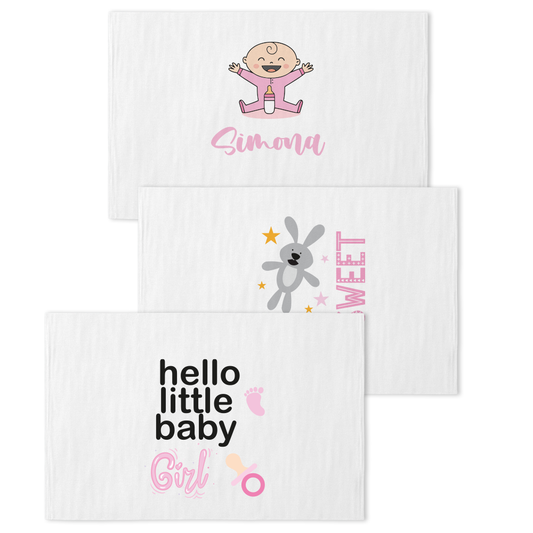 Baby Pink Girl - Set 3 pezzi mussole personalizzate con nome