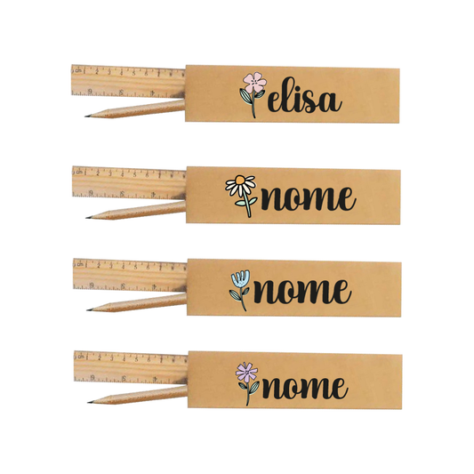 Name flowers - Kit cancelleria regalo in legno da 4 pezzi - personalizzato con nomi