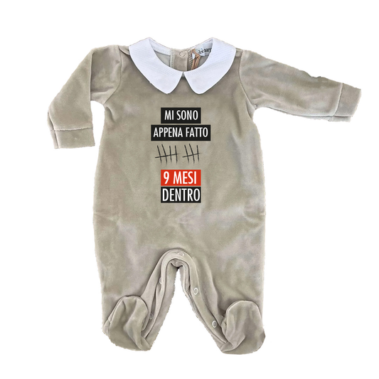 9 mesi dentro - Pagliaccetto Neonato in Ciniglia con Colletto Bianco