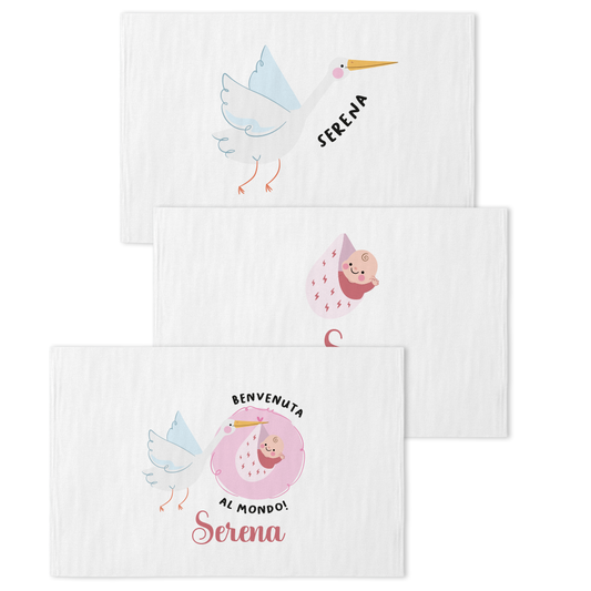 Benvenuta al mondo - Set 3 pezzi mussole personalizzate con nome