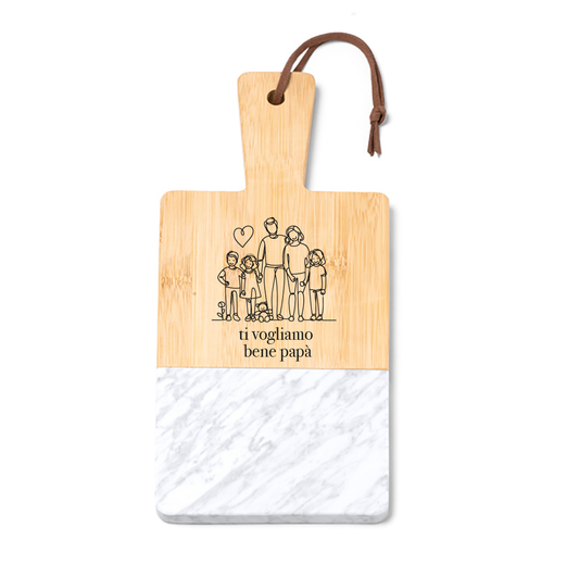 Ti vogliamo bene papà - Tagliere in marmo e bamboo naturale