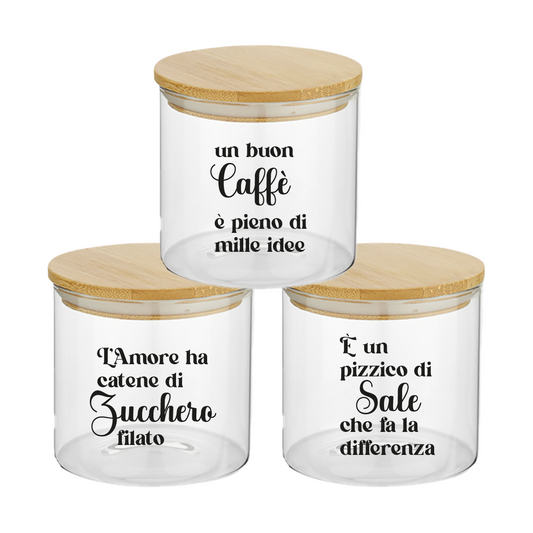 Un buon caffè - Set 3 Contenitori Trasparenti per Caffè Zucchero Sale