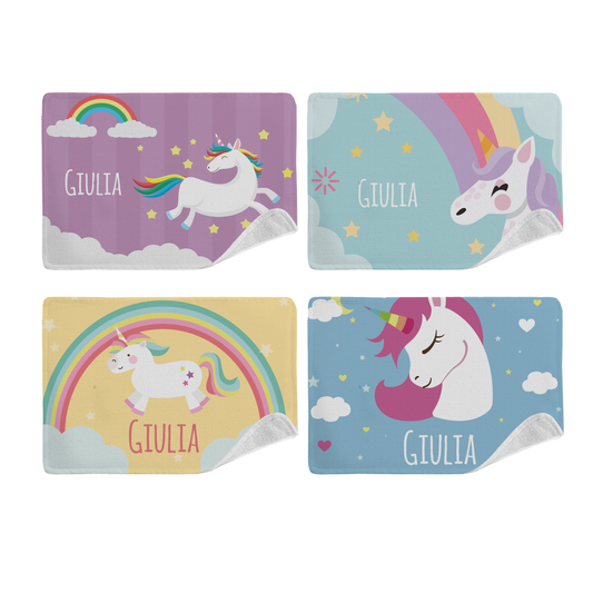 Unicorn - Set di 4 Tovagliette in tessuto lavabile - personalizzata con nome