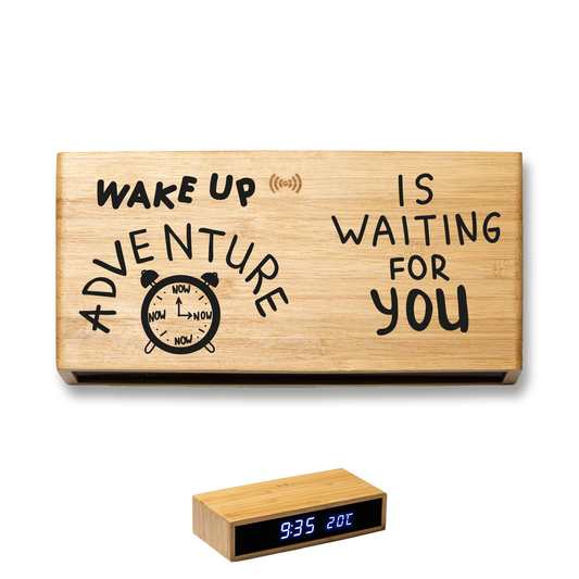 Wake up - Sveglia Digitale in Bambù con Orologio da Tavolo