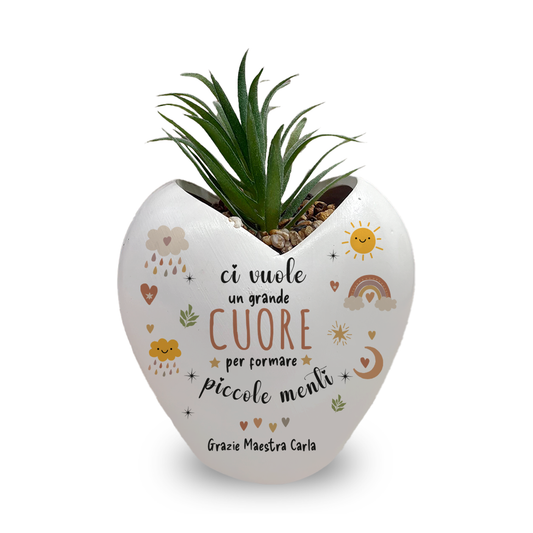 Ci vuole un grande cuore per formare piccole menti - Piantina con vaso - personalizzata con nome