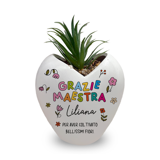 Maestra grazie di cuore - Piantina con vaso - personalizzata con nome