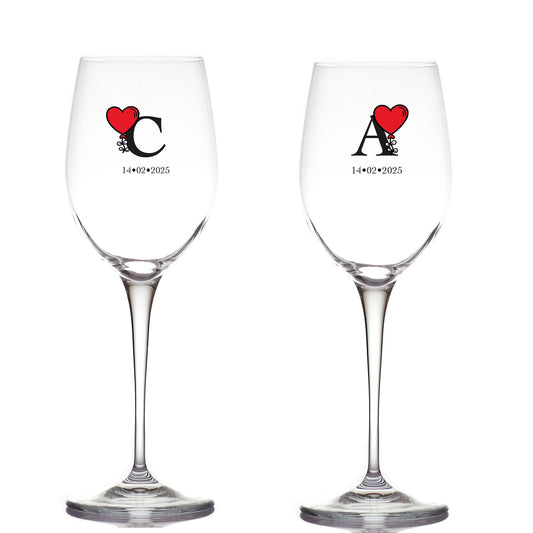 Date Heart - Coppia di Calici - personalizzati con iniziali