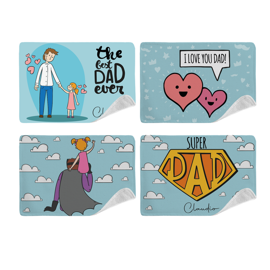 Super Dad - Set di 4 Tovagliette in tessuto lavabile - personalizzata con nome