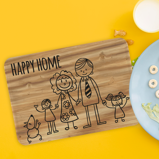 Happy Home - Set di 4 Tovagliette in tessuto lavabile - personalizzata con cognome