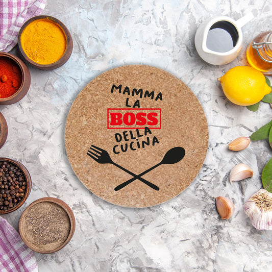 Mamma la boss della cucina - Set da 3 pezzi Sottopentola in sughero naturale 19cm