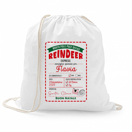 Reindeer express service - Sacchetto personalizzato con nome
