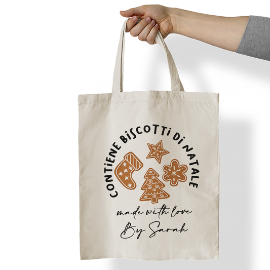 Contiene biscotti di Natale - Shopper In Cotone - personalizzata con nome