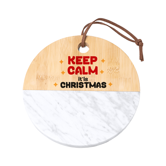 Keep calm it'is Christmas - Tagliere in marmo e bamboo naturale