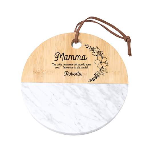 La mia mamma - Tagliere in marmo e bamboo naturale - personalizzato con nome