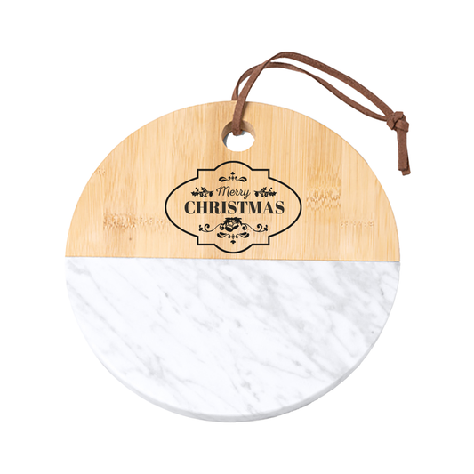 Merry Christmas - Tagliere in marmo e bamboo naturale