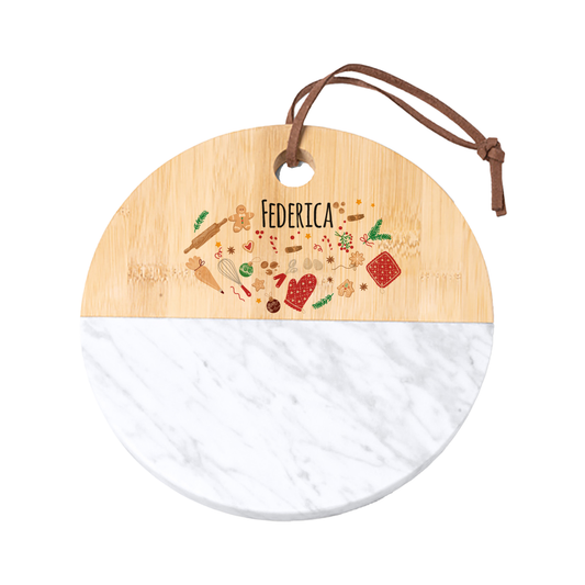 Stile natalizio - Tagliere in marmo e bamboo naturale - personalizzato con nome
