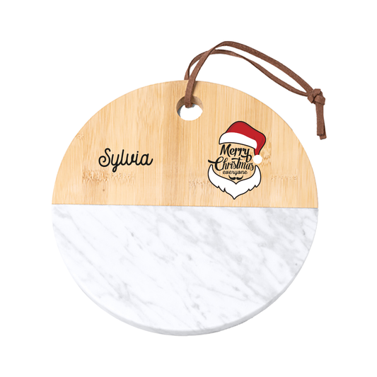 Merry Christmas Everyone - Tagliere in marmo e bamboo naturale - personalizzato con nome