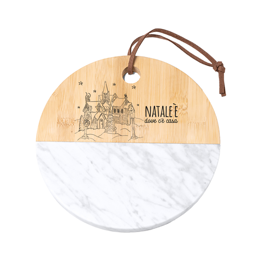 Natale è dove c'è casa - Tagliere in marmo e bamboo naturale