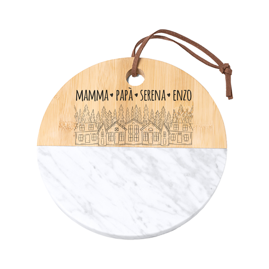Family - Tagliere in marmo e bamboo naturale - personalizzato con nomi