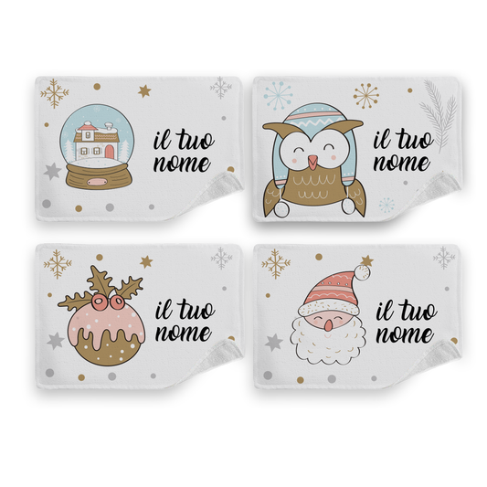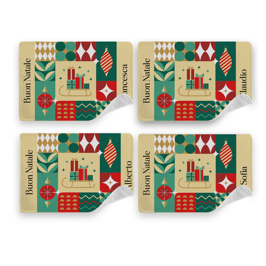 Buon Natale Mini - Set di 4 Tovagliette in tessuto lavabile - personalizzato con nomi