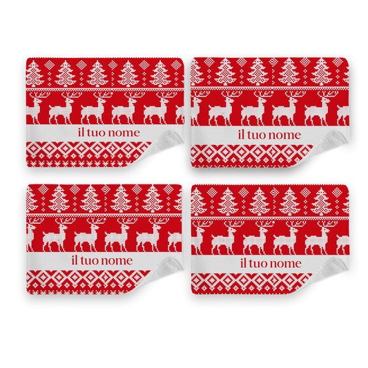 Red Christmas - Set di 4 Tovagliette in tessuto lavabile - personalizzato con nome