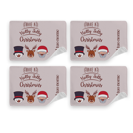 Holly Jolly Christmas - Set di 4 Tovagliette in tessuto lavabile - personalizzato con nomi