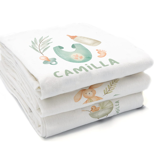 Green Rabbit - Set 3 pezzi mussole personalizzate con nome