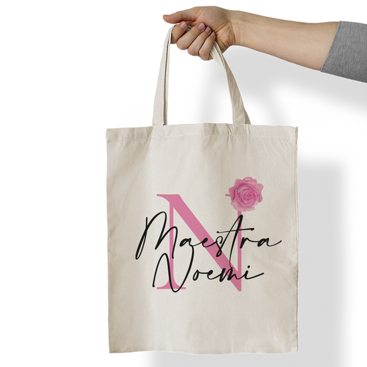 Maestra pink flower and letter - Borsa Mare - idea regalo maestra - personalizzata con nome