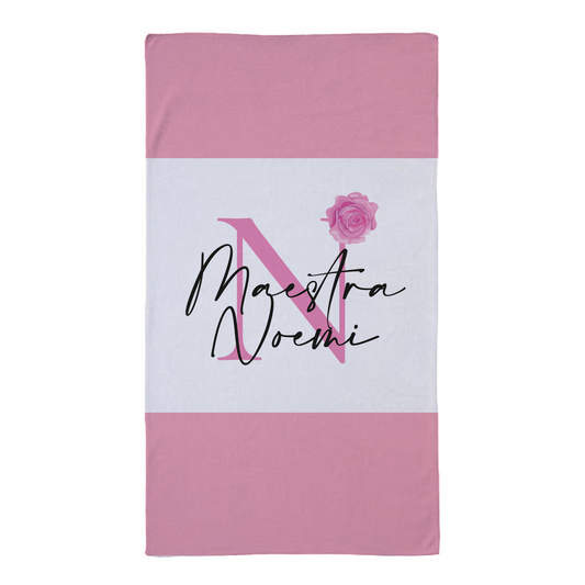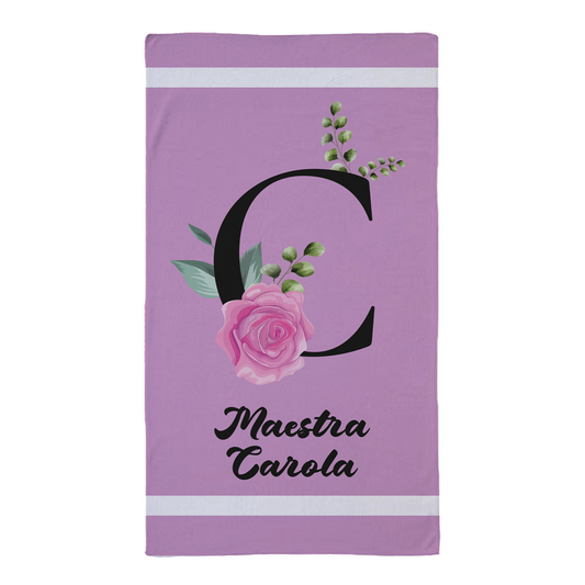Maestra iniziale pink flower - Telo Mare - personalizzato con nome