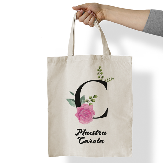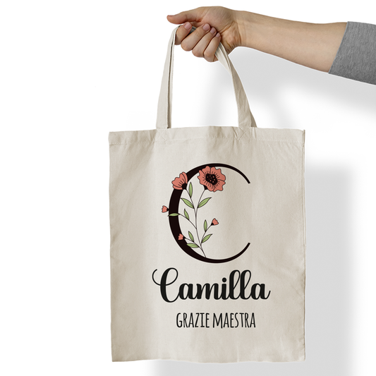 Maestra flower and letter - Borsa Mare - idea regalo maestra - personalizzata con nome