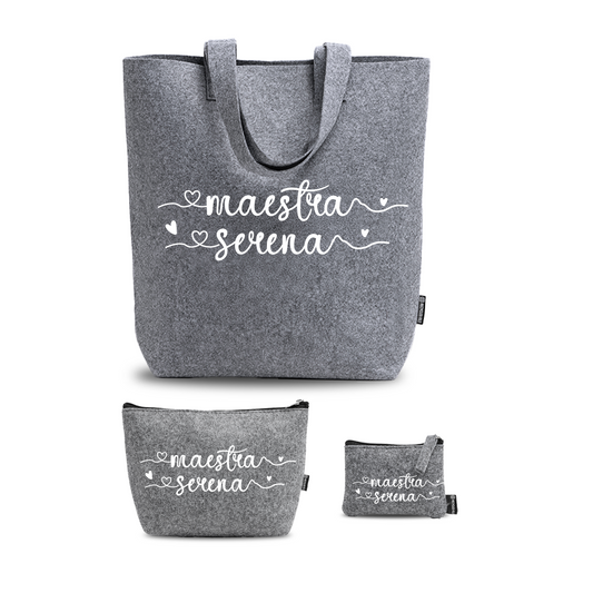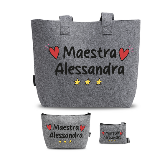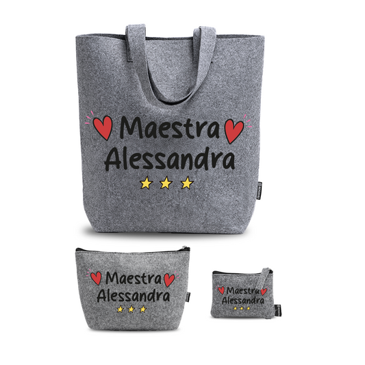Name Maestra - Tris Borse in feltro con designe melange - personalizzato con nome