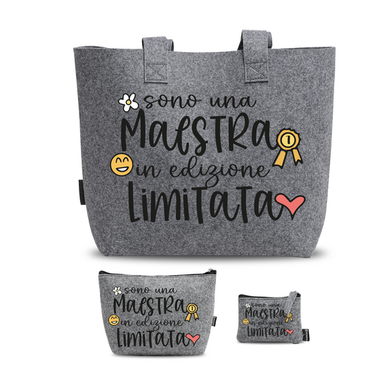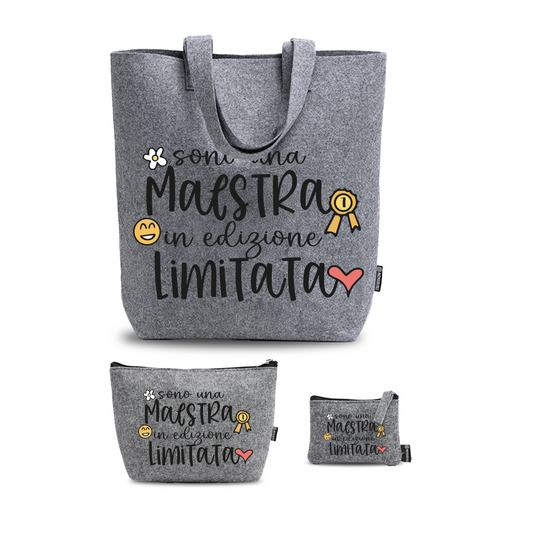 Sono una maestra in edizione limitata - Tris Borse in feltro con designe melange