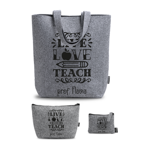 Live, love, teach - Tris Borse in feltro con designe melange - personalizzato con nome