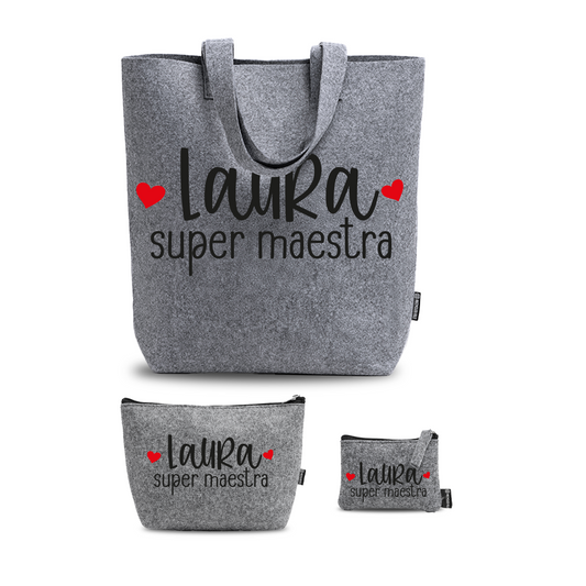 Super maestra - Tris Borse in feltro con designe melange - personalizzato con nome