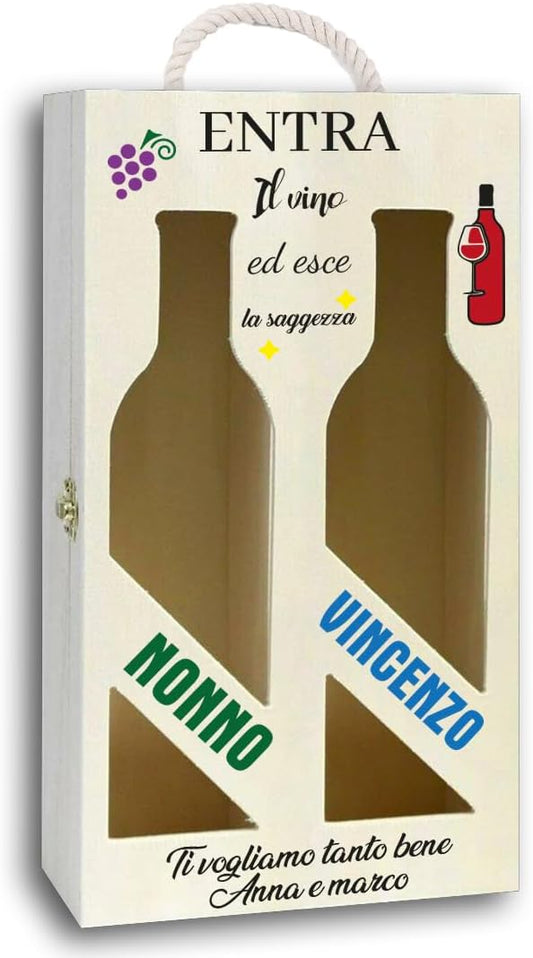 Entra il Vino Esce la Saggezza - Scatola Portabottiglie Personalizzata