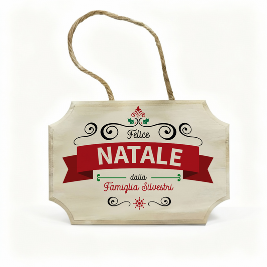 Felice Natale - fuoriporta in legno - personalizzato con cognome