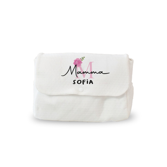 Mamma flower pink name - Borsa Fasciatoio per Neonato - personalizzata con nome