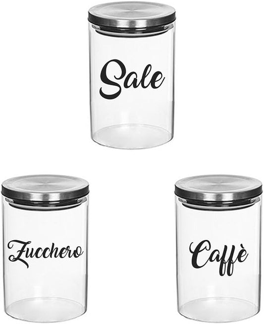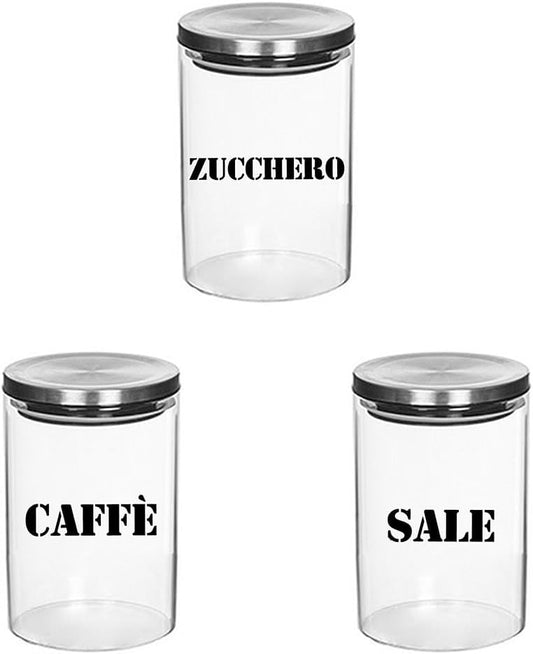 La vita inizia dopo il caffè - Set 3 Contenitori Trasparenti Con Coperchio Acciaio