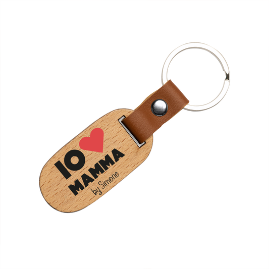 Io amo mamma - Portachiavi in Legno personalizzato con nome